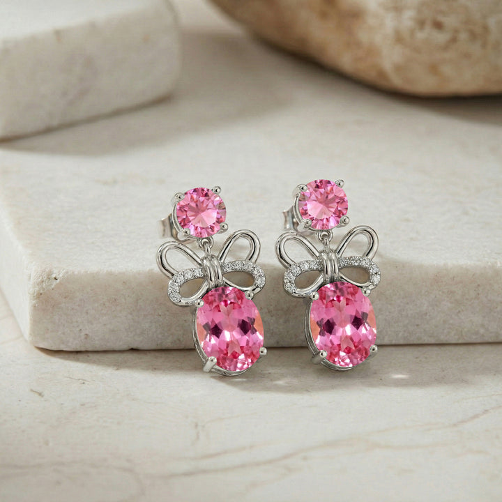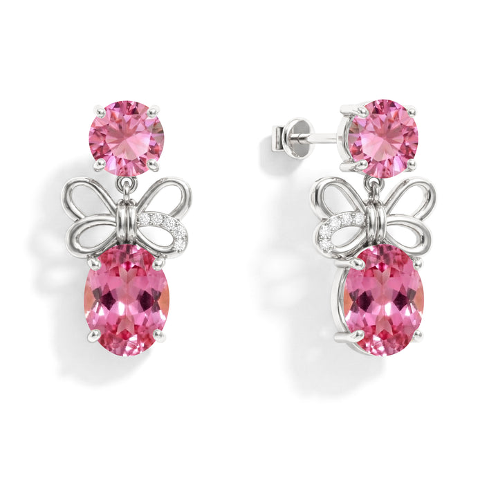 Pink Tourmaline Round and Oval Stud Earring in 925 Sterling Silver 6 MM 5-ct.