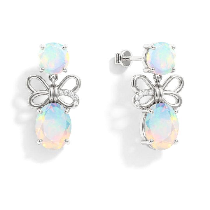White Opal Round and Oval Stud Earring in 925 Sterling Silver 6 MM 5-ct.