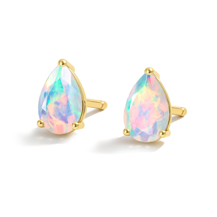 Elegant 7x5 mm White Opal Pear Cut Stud Earrings in Sterling Silver