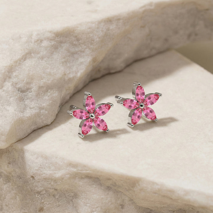 Pink Tourmaline Flower and Marquis Shape Stud Earring in 925 Sterling Silver 4X2 MM 3ct.
