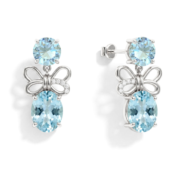 Aquamarine Round and Oval Stud Earring in 925 Sterling Silver 6 MM 5-ct.