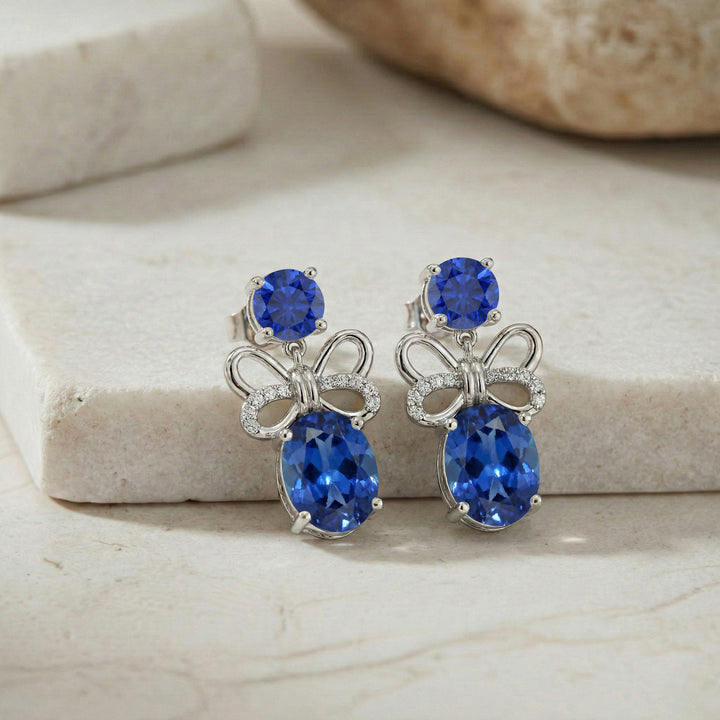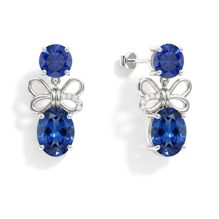 Blue Sapphire Round and Oval Stud Earring in 925 Sterling Silver 6 MM 5-ct.