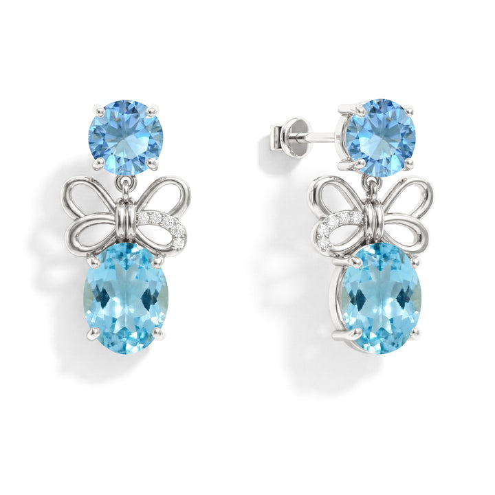 Blue Topaz Round and Oval Stud Earring in 925 Sterling Silver 6 MM 5-ct.