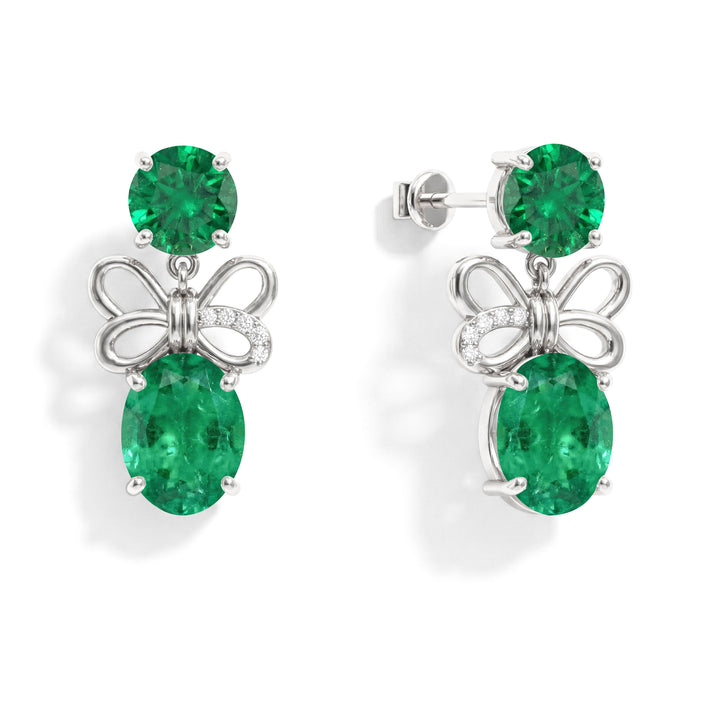 Emerald Round and Oval Stud Earring in 925 Sterling Silver 6 MM 5-ct.