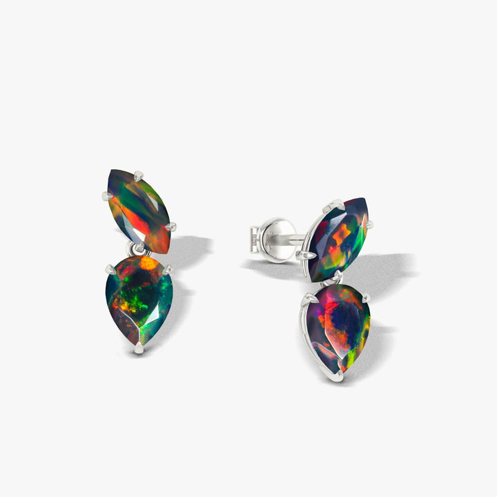 Natural Black Opal Marquise & Pear Two Stone Stud Earrings