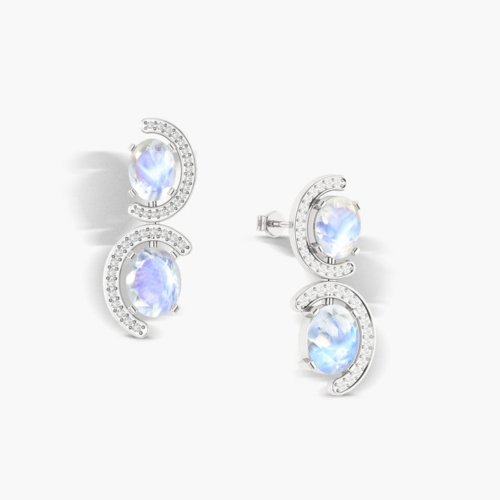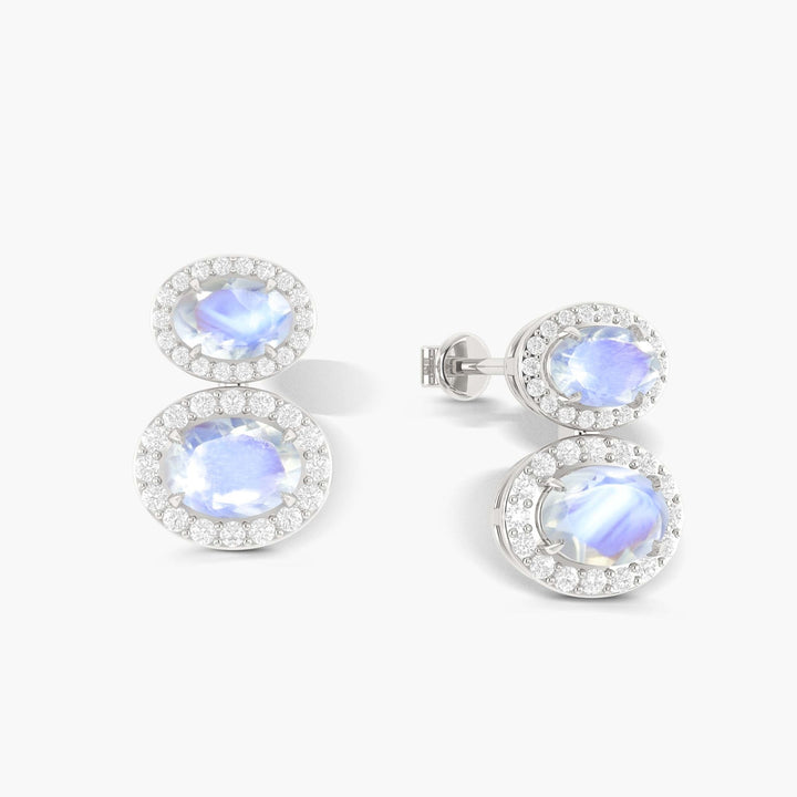 Natural Moonstone Dual Stone Halo Stud Earrings