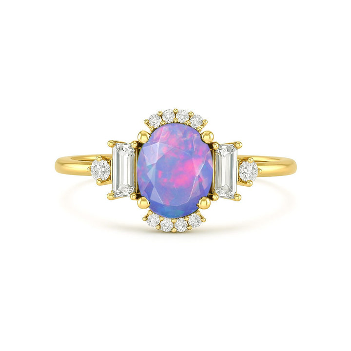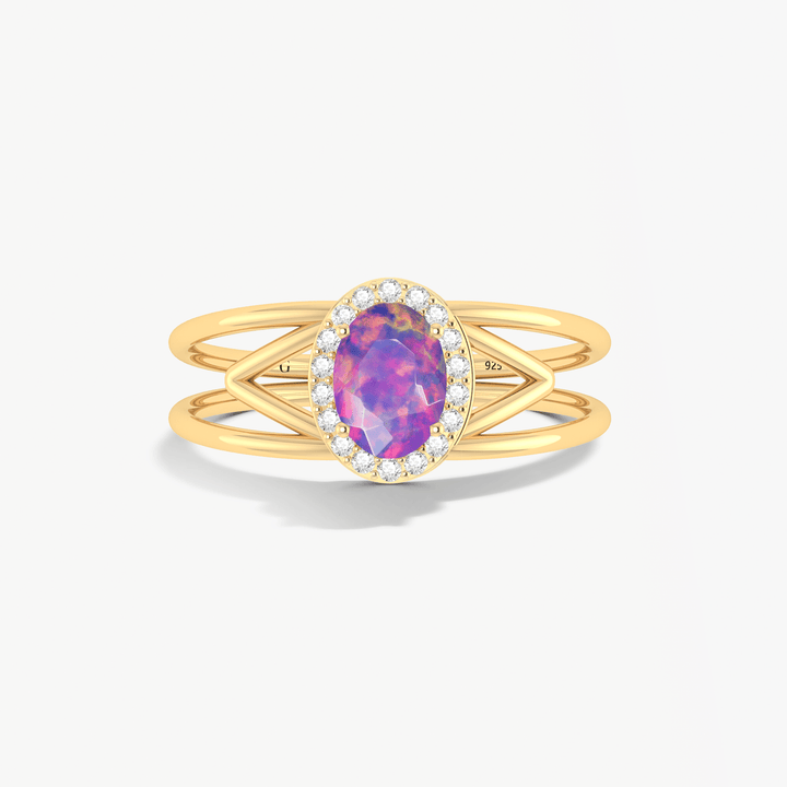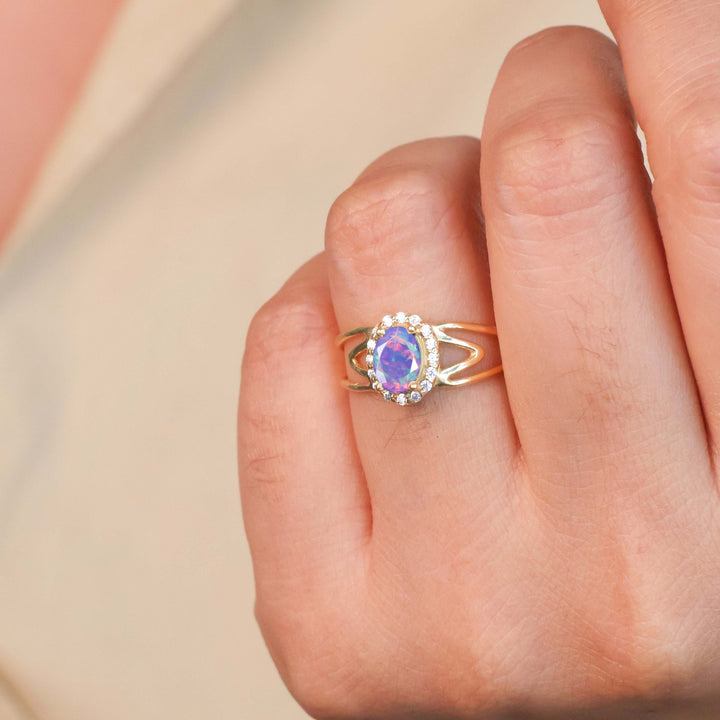 Lavender Fire Opal Halo Wedding Ring