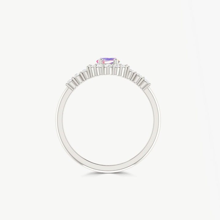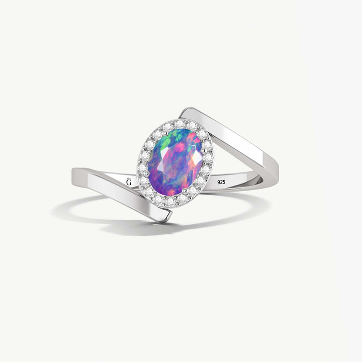 Lavender Opal Bypass Halo Ring in Sterling Silver