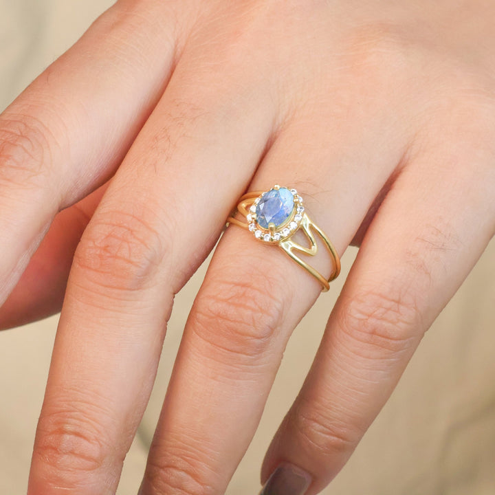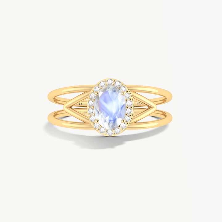 Moonstone Oval Bypass Ring with Halo Design