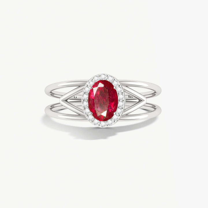Ruby Bypass Halo Ring in Sterling Silver