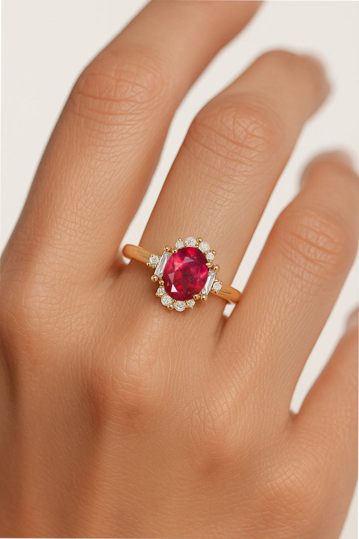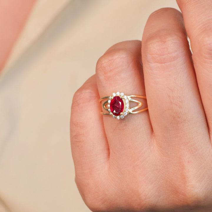 Ruby Halo Wedding Ring with 8x6 mm Natural Stone