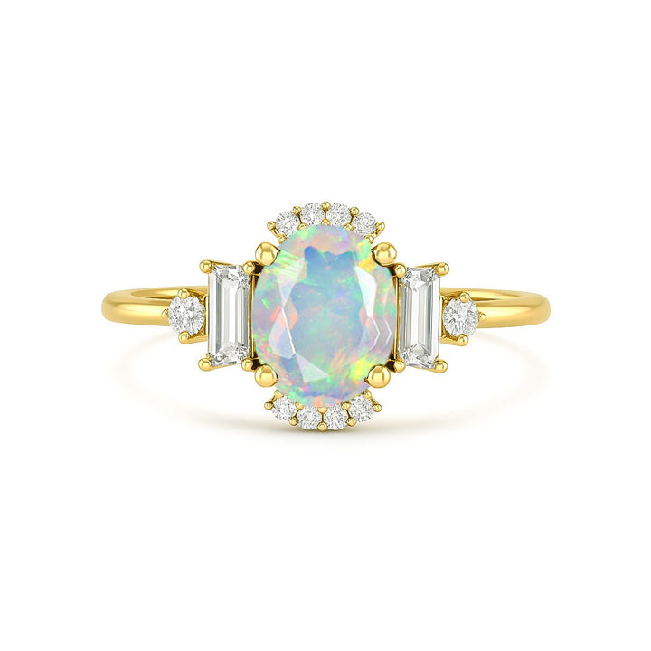 White Opal Halo Wedding Ring with Subtle Elegance