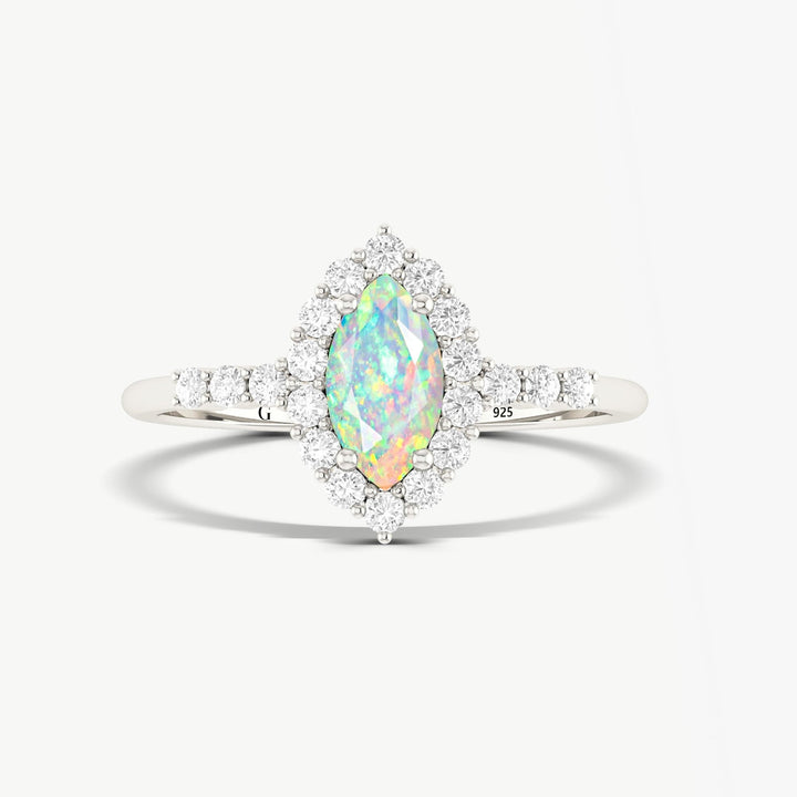 White Opal Halo Wedding Ring in Marquise Shape