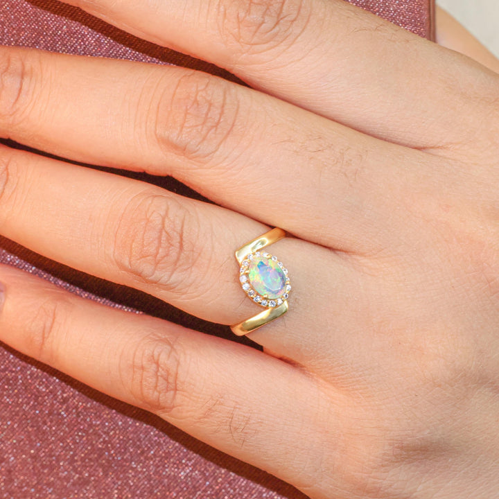 Exquisite White Opal Bypass Halo Ring