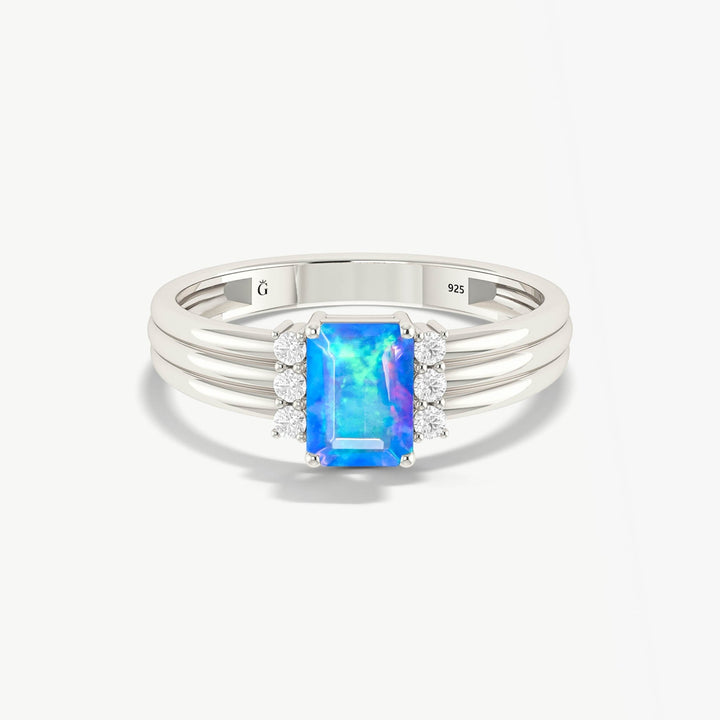Natural White Opal Wedding Ring - Octagon Triplet Style