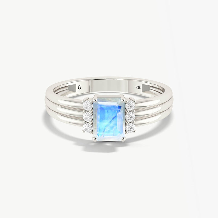 Moonstone Sterling Silver Wedding Ring - Octagon Design