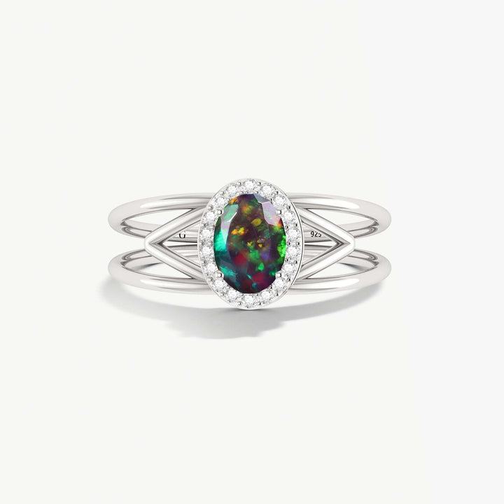 Elegant Black Opal Halo Wedding Ring