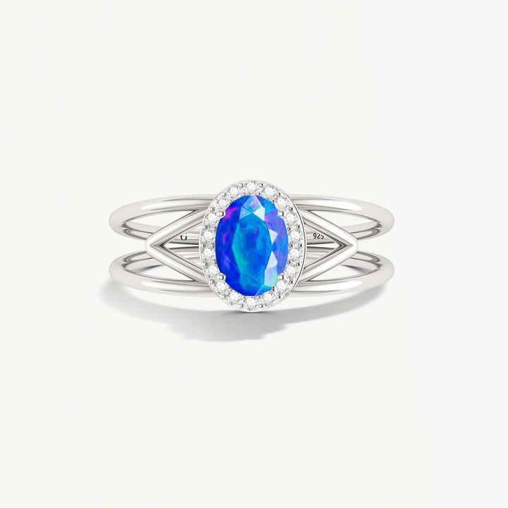 Blue Opal Bypass Halo Ring in 925 Sterling Silver