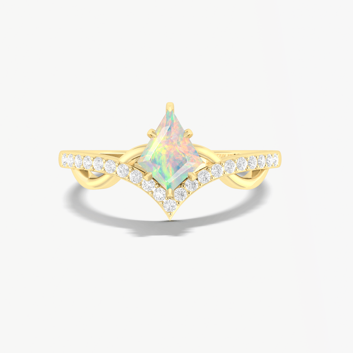 Opal Kite Wishbone Ring - Natural White Opal Jewelry