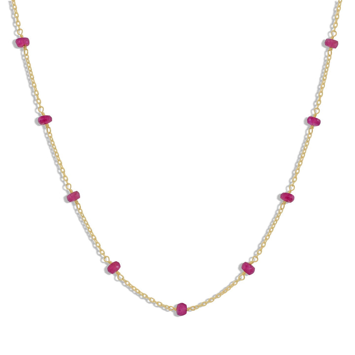 Beaded Chain Necklace for Women Natural Pink Ruby