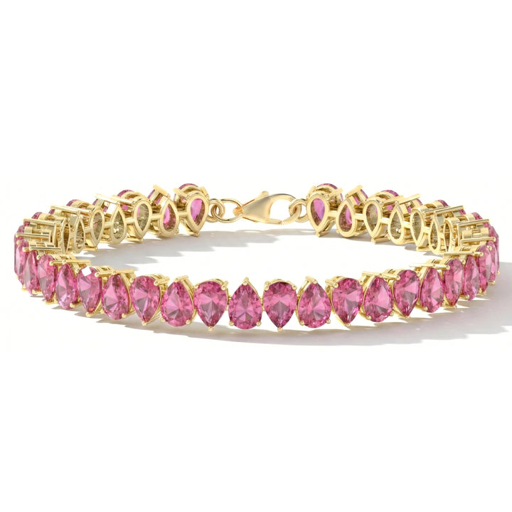 Pink Tourmaline Pear Tennis Bracelet in 925 Sterling Silver 22 CT
