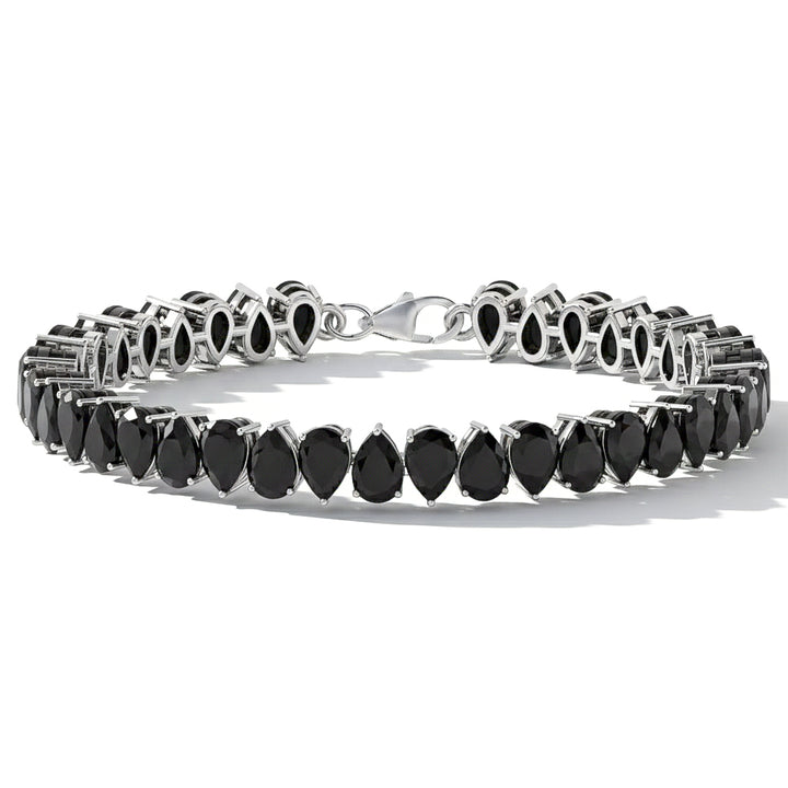 Black Onyx Pear Tennis Bracelet in 925 Sterling Silver 22 CT