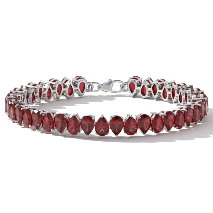 Garnet Pear Tennis Bracelet in 925 Sterling Silver 22 CT