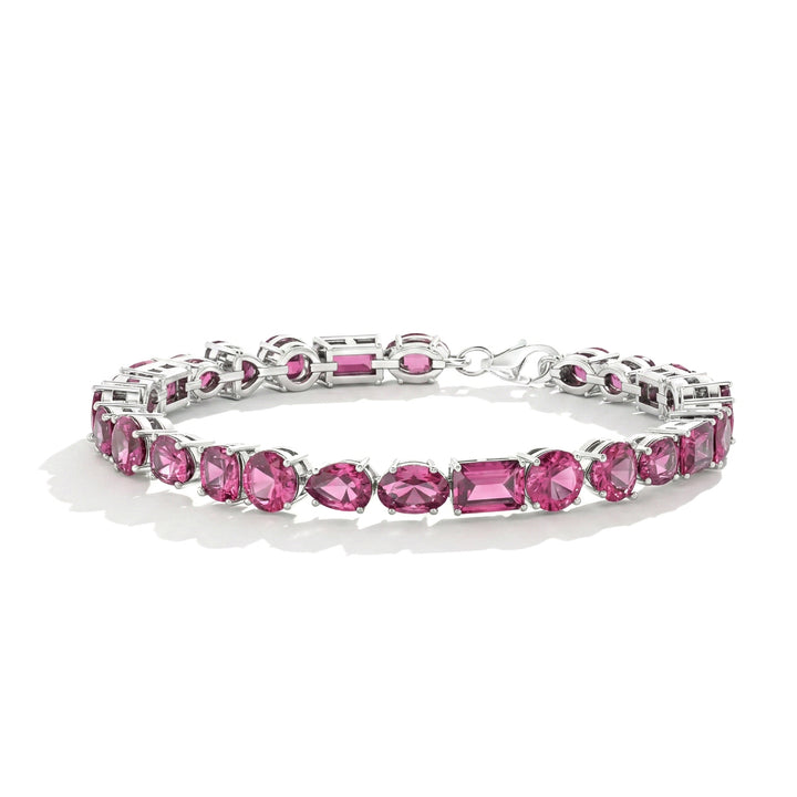 Pink Tourmaline Multi Shape Tennis Bracelet in 925 Sterling Silver 15.65 CT