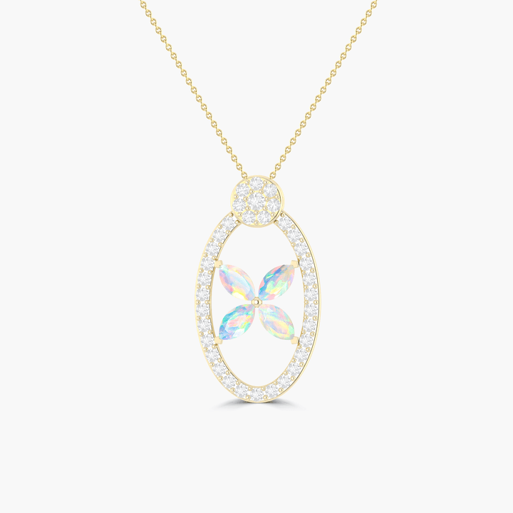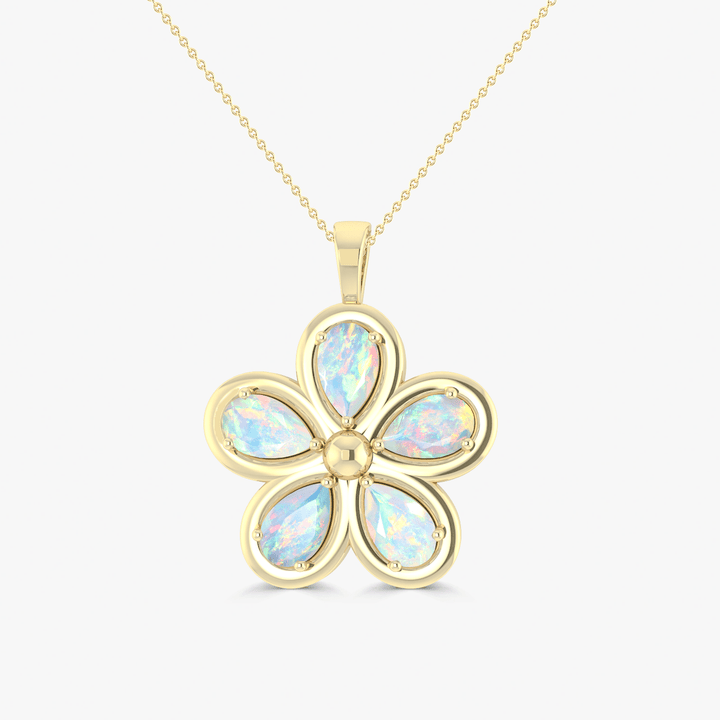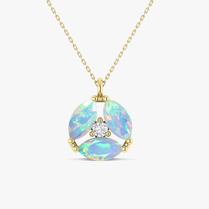 Natural White Opal Round Cluster Charm Pendant Necklace