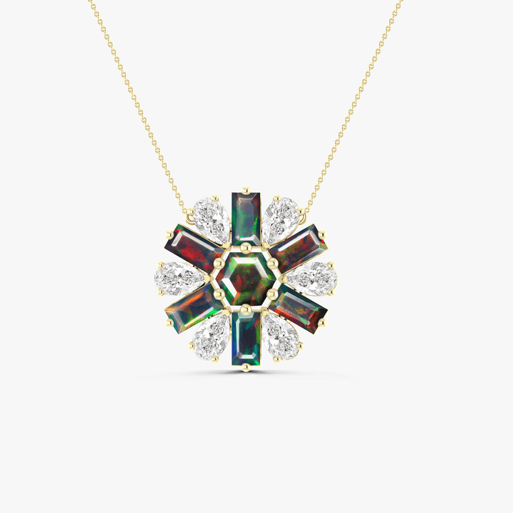 Natural Black Opal Round Cluster Charm Pendant Necklace
