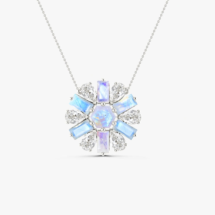 Natural Moonstone Round Cluster Charm Pendant Necklace