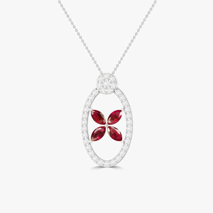 Natural Ruby Round Cluster Charm Pendant Necklace