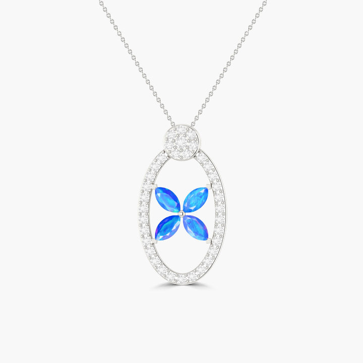 Natural Blue Opal Round Cluster Charm Pendant Necklace