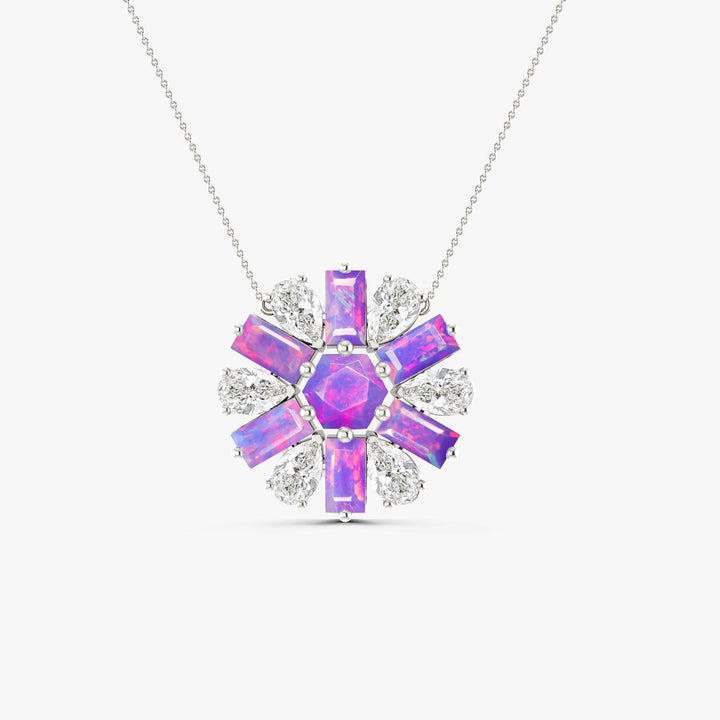 Natural Lavender Opal Round Cluster Charm Pendant Necklace