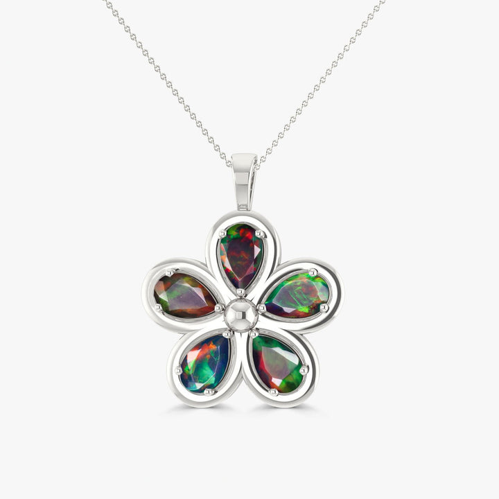 Natural Black Opal Flower Style Pendant Chain Necklace