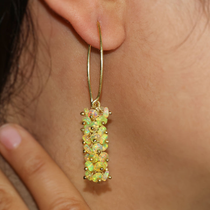 Natural Opal Tumble Beaded Cluster Dangle Drop Earrings
