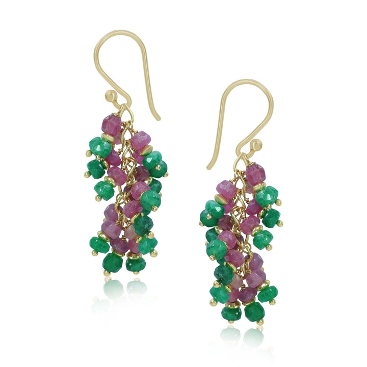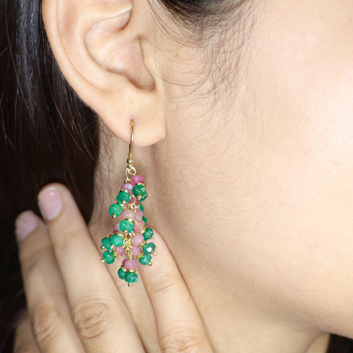 Faceted Natural Emerald Ruby French Hook Beaded Cluster Earrings