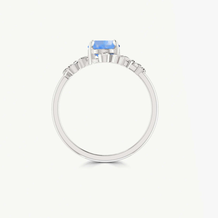 Natural Moonstone with White Zircon Side Stone Solitaire Ring