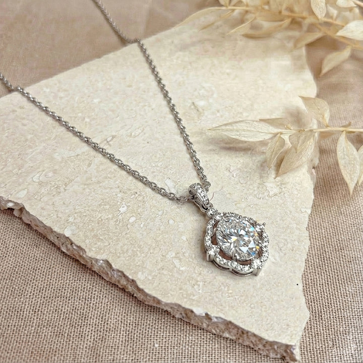 Cubic Zirconia Oval Halo Pendant Necklace in 925 Sterling Silver 1.2ct