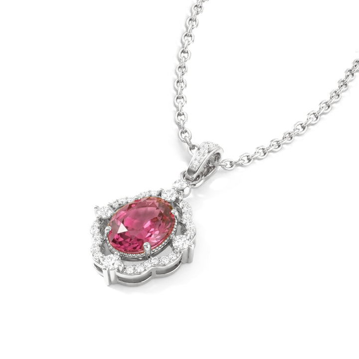 Pink Tourmaline Oval Halo Pendant Necklace in 925 Sterling Silver 1.2ct