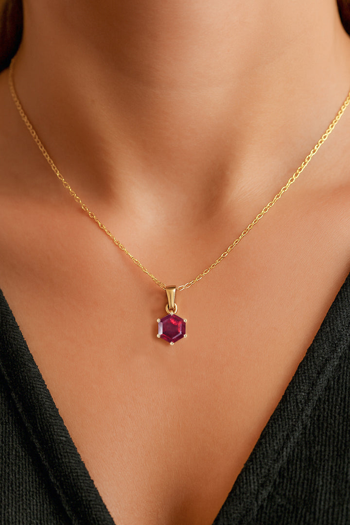 Natural Ruby Hexagon Pendant Necklace in 925 Sterling Silver 1.50ct Sale price$45.50 USD Regular price$65.00 USD