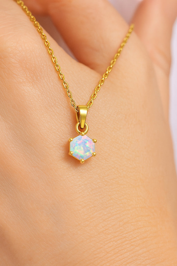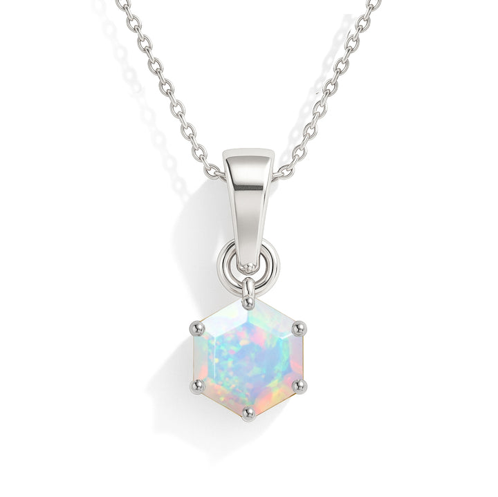 Natural White Opal Hexagon Pendant Necklace in 925 Sterling Silver 1.20ct Sale price$45.50 USD Regular price$65.00 USD