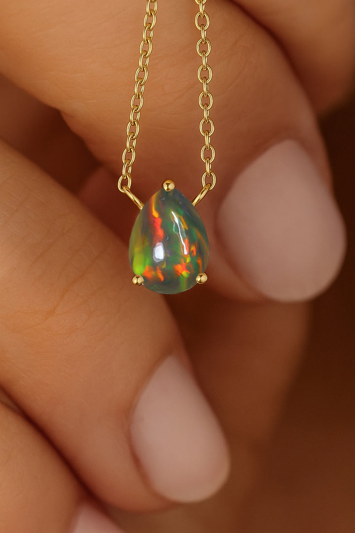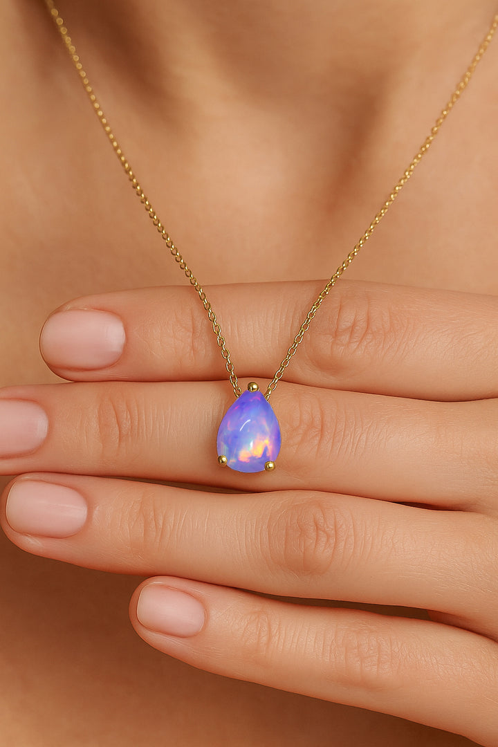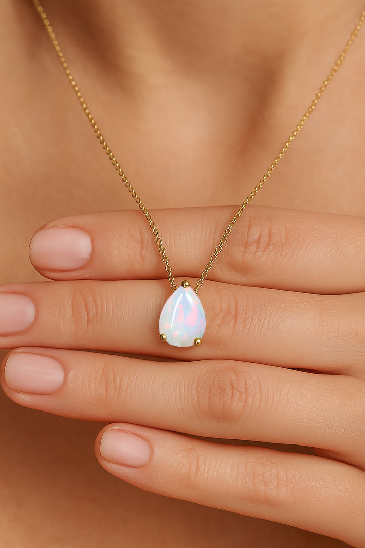 • Teardrop gold opal necklaces for graceful movement