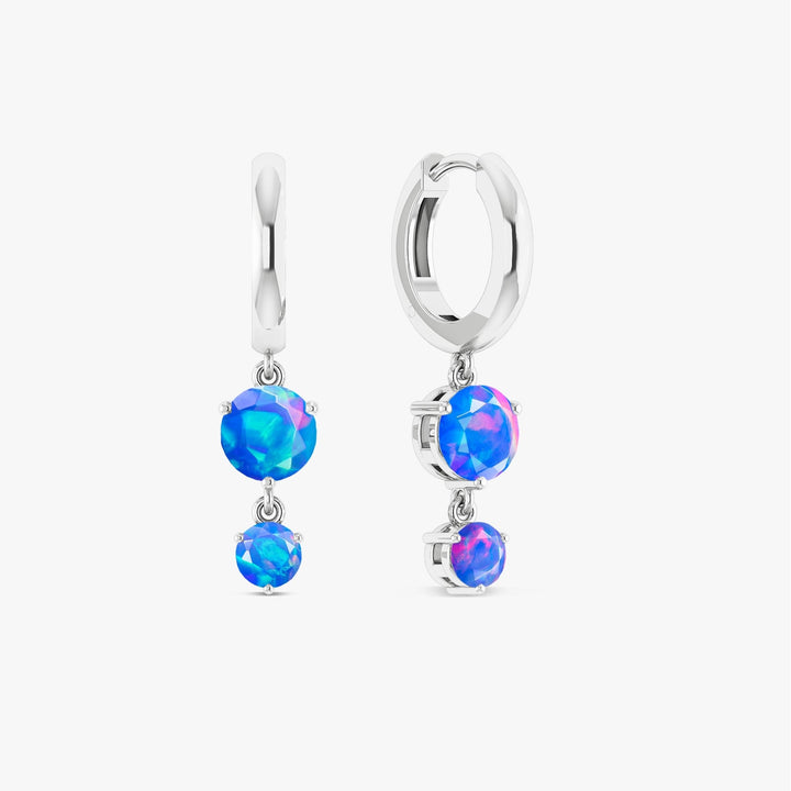 Blue Fire Opal Dual Round Stone Hoop Earrings