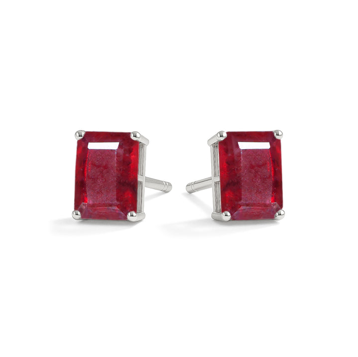 Ruby Octagon Stud Earrings in 925 Sterling Silver | 7x5mm Gemstone