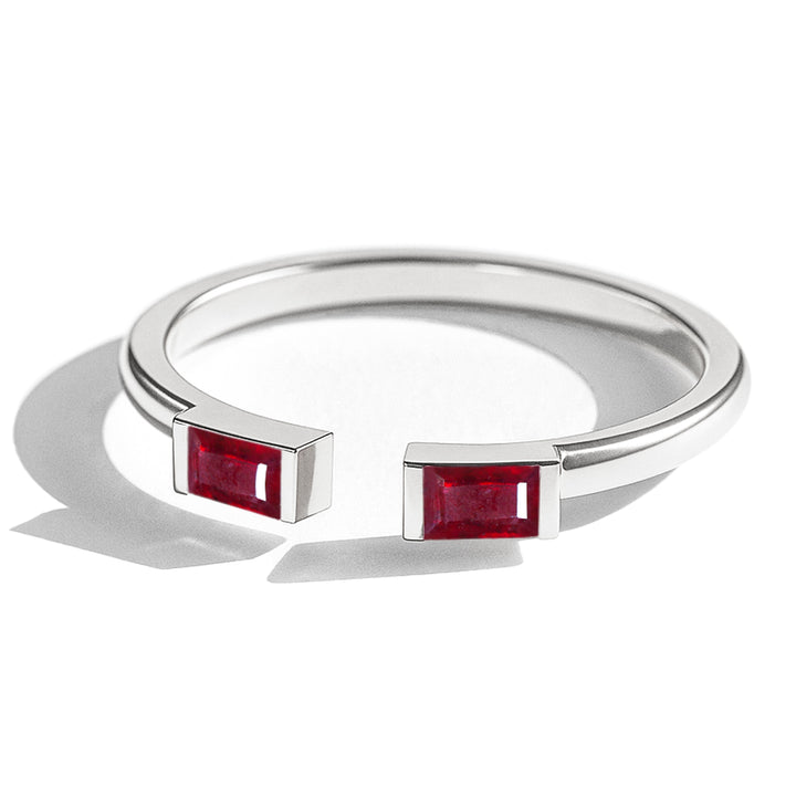 Natural Ruby Baguette Open Ring in 925 Sterling Silver 5x2mm 0.80ct