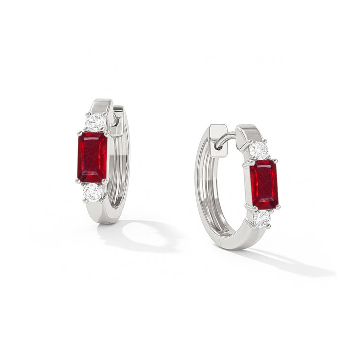 Natural Ruby Baguette Hoop Earrings 925 Silver 5x3mm Stones