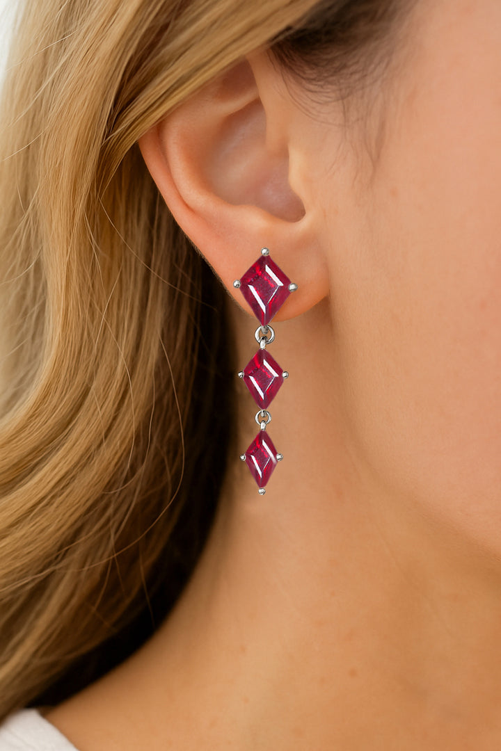 Ruby Kite Trio Stone Drop Earrings in 925 Sterling Silver