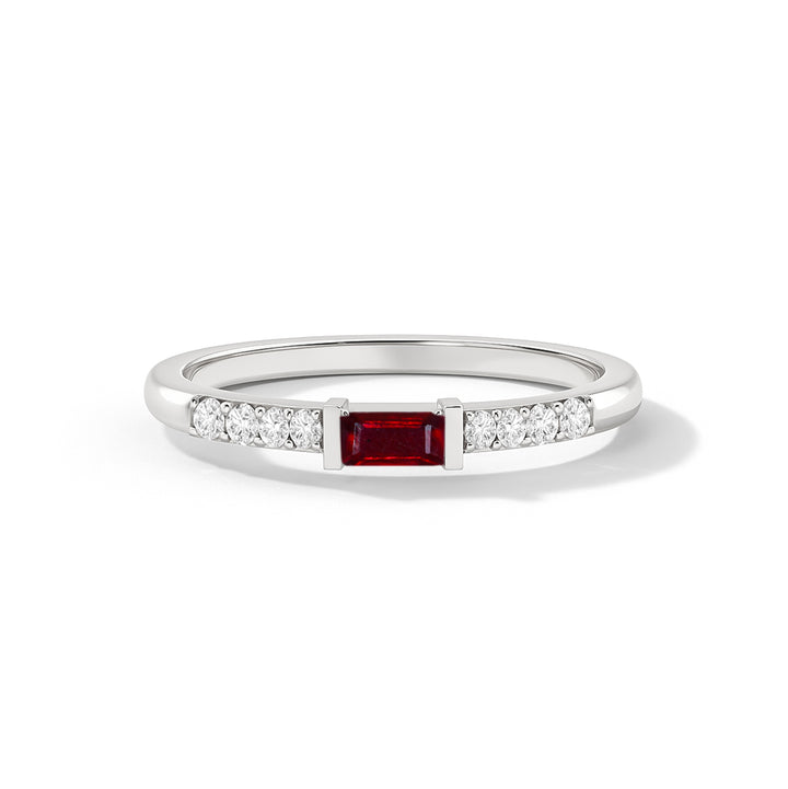 925 Sterling Silver Ruby Baguette Solitaire Ring with 4x2mm Stone 0.30ct