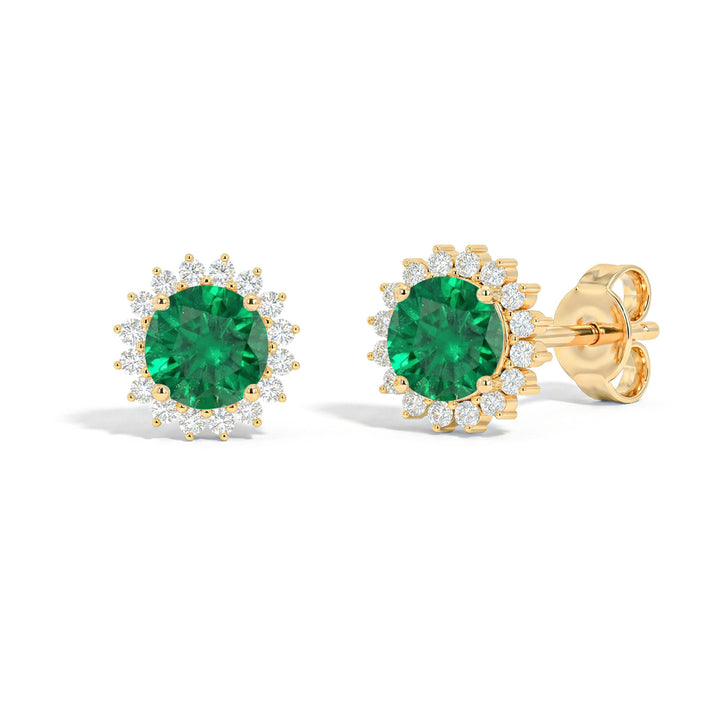 Emerald Round Halo Stud Earrings in 925 Sterling Silver 5 MM 1.3ct